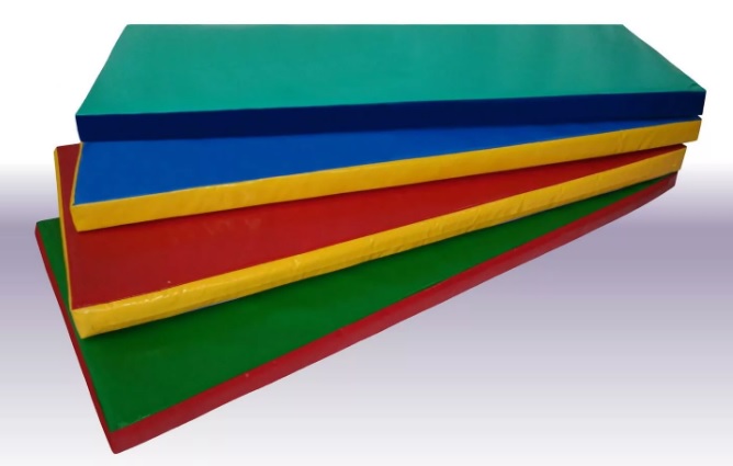 Мат гимнастический выполнен из галантерейной винилискожи, соответствующей ТУ 8713-001-96625236-2006. В качестве наполнителя используется поролон плотностью 20 кг/м3. Спортивные полотна обладают следующими преимуществами:• влагоустойчивостью;